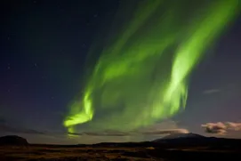 From September through April, the Aurora Borealis or Northern Lights can be seen in all parts of Iceland so long as the sky is clear and it is dark. Areas that are not subject to "light pollution" are the best places to watch for the lights. Areas in the Icelandic countryside tend to be best. Researchers have discovered that auroral activity is cyclic, peaking roughly every 11 years.